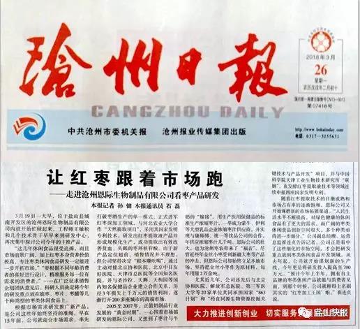 《滄州日報》:滄州恩際生物制品有限公司讓紅棗跟著市場跑!跑出一片天!
