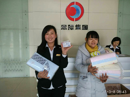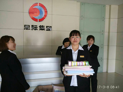 為了感謝長(zhǎng)期付出辛勤汗水的全體員工,在2017年3月8日三八婦女節(jié)這天體現(xiàn)公司對(duì)女員工的特別關(guān)愛(ài). 同時(shí)提高公司員工福利,恩際集團(tuán)工會(huì)委員會(huì)特為全體女職工準(zhǔn)備了毛巾、香皂,讓廣大女性職工感受到公司領(lǐng)導(dǎo)的貼心關(guān)懷,感受到公司的溫暖!