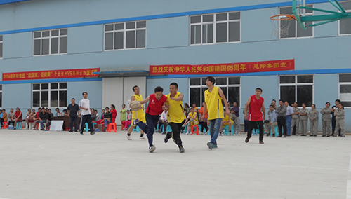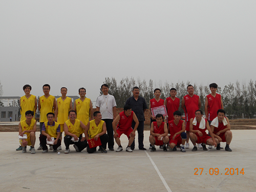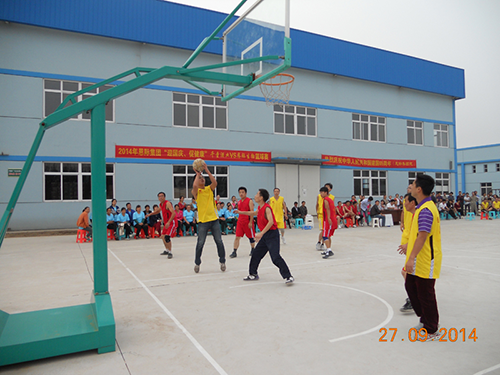 2014年9月27日 恩際集團舉辦“迎國慶、促健康”千童酒業(yè)VS恩際生物籃球賽,熱烈慶祝中華人民共和國建國65周年。在激烈的比賽期間還進行了拔河比賽,啦啦隊表演了《抓錢舞》、《小蘋果》等舞蹈。