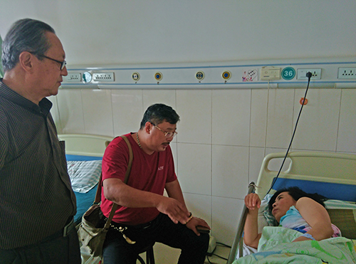 恩際集團工會領(lǐng)導(dǎo)去醫(yī)院看望生病員工并帶去員工捐款。