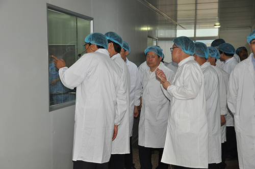 呂梁市市長王立偉、秘書長梁斌、臨縣縣長李雙全,以及臨縣中鷹、豐潤公司董事長一行在滄州市黨組成員劉立著、鹽山縣長丁清波、副縣長馬景政的陪同下,在恩際集團董事長崔軍和總裁邸繼澎的帶領下,參觀了河北恩際集團下屬分公司滄州恩際生物制品有限公司生產車間,并且對恩際超臨界萃取技術,國內外先進的生產灌裝設備,六條現代化生產流水線以及先進的生產技術表示高度肯定。