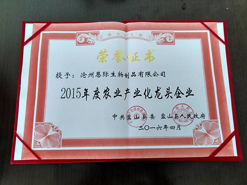 熱烈慶祝滄州恩際生物制品有限公司被評為2015年度農業(yè)產業(yè)化龍頭企業(yè)