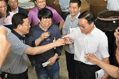 鹽山縣食藥監(jiān)局與縣人大、縣政協(xié)來我公司參觀并指導工作。在董事長崔軍先生的帶領(lǐng)下參觀千童釀酒廠。